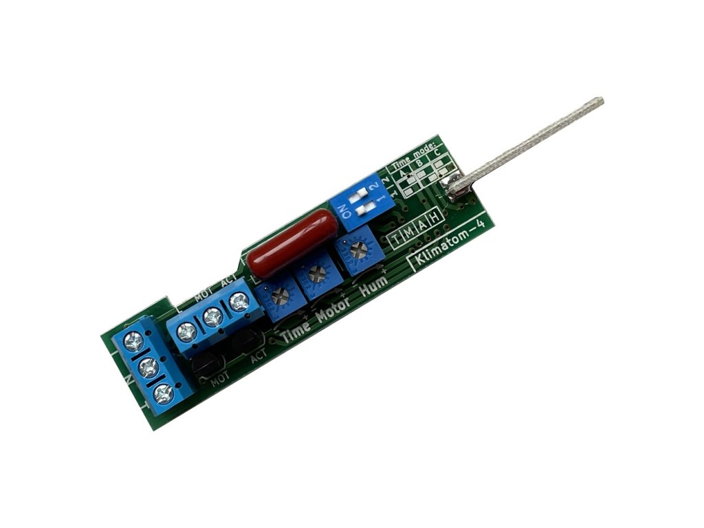 - PRIMO elektronika AH - regulace otáček motoru M + nastavitelný časový doběh T a hygrostat H pro ventilátory s automatickou žaluzií