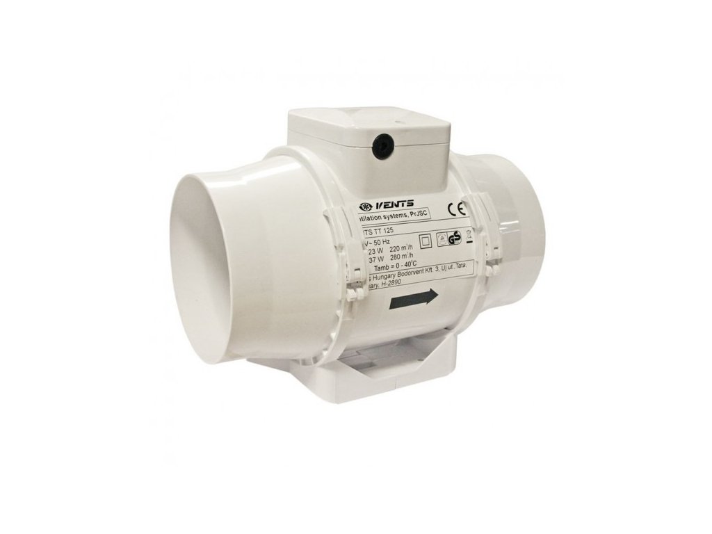 Popis: Potrubní diagonální ventilátory VENTS TT jsou určeny k odsávání vzduchu z bytových a nebytových prostor, jako jsou kuchyně, koupelny, toalety, WC, kanceláře, prodejny, garáže, sklady, restaurace a pod. Jsou vhodné na připojení do potrubí s vyšší tlakovou ztrátou. Ventilátory do potrubí Vents TT dosahují velký průtok vzduchu při nízké hlučnosti. Ventilátory jsou vybaveny dvojotáčkovým motorem s kuličkovými ložisky, to je předurčuje k využívání v nepřetržitém provozu. Ventilátory jsou kompatibilní se vzduchotechnickým potrubím o daném průměru.