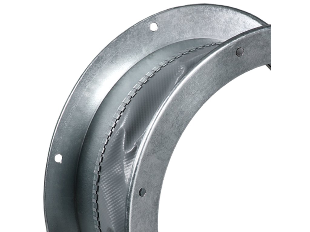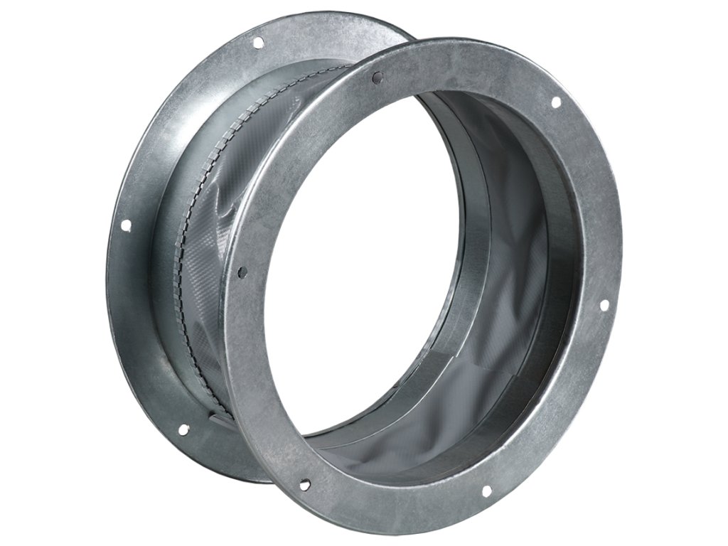 Pružné připojení kovové kruhové se používá tam, kde potřebujeme pohltit šum, hluk nebo vibrace přenášené z ventilátorů na vzduchovody. Pružné připojení se osazuje mezi zdroj vibrací a vzduchovody. Je vhodné do teploty +80 °C. Pružné připojení je vyrobeno z pozinkované oceli a vyztužené nylonové textílie.