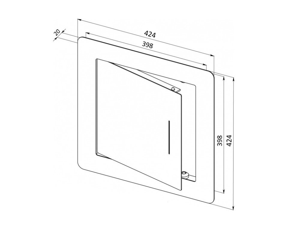 🛠️ Montáž: Do rámečku profilu U s kotevními otvory natlačíme pojivo a následně zasadíme do připraveného otvoru. Dvířka se uzavírají lehkým zatlačením do rámečku, otevírání je řešeno pomocí běžné eurokarty, která se zasune do přední drážky na křídle dvířek – jednoduché, bezpečné a bez zbytečných madel či zámků. Plně vyjímatelné dveřní křídlo umožňuje čistý průlez a změnu směru otevírání na levé nebo pravé v případě potřeby.