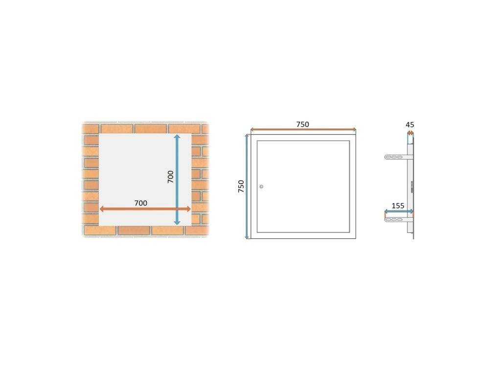 Kvalitně vyrobená nerezová revizní dvířka RDn 700x700 KL se snadným a bezpečným otevíráním pomocí čtyřhranné kličky. Dvířka jsou vyrobená z broušeného nerezu. Vhodná pro montáž do sádrokartonu či zdiva pomocí šroubů nebo lepidla. Pro vnitřní i venkovní použití.