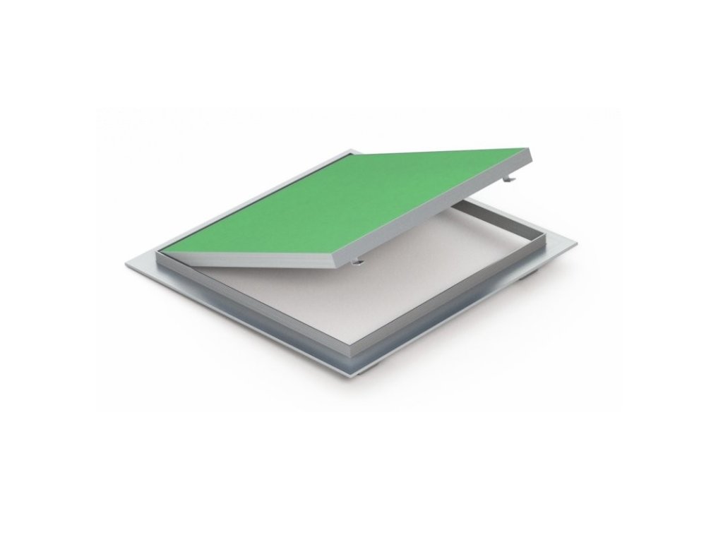 Zelená sádrokartonová deska obsahuje impregnovanou vrstvu a je vhodná do místnosti s výskytem zvýšené vlhkosti jako jsou koupelny či toalety. Tato dvířka mohou být použita i pro přilepení keramického obkladu, čímž je možné zakrýt hliníkový rám a vytvořit takzvaná neviditelná dvířka.