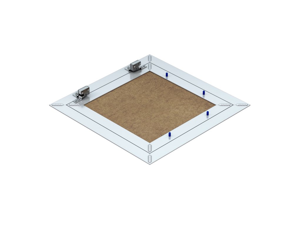Hlavní nosná konstrukce dvířek a rám jsou vyrobeny z hliníkového profilu osazené sádrokartonovou deskou (GKBi - zelená) o síle 12,5 mm upevněnou do vnitřního rámu pomocí vysokopevnostního lepidla, což umožňuje rychlou a nenáročnou povrchovou úpravu. Dvířka jsou vyráběná ze speciálních hliníkových profilů, které jsou svařovány do venkovního a vnitřního rámu. Kompletní sestava je spojena pomocí pevného pantu a umožňuje tak otevření křídla dvířek v případě potřeby.