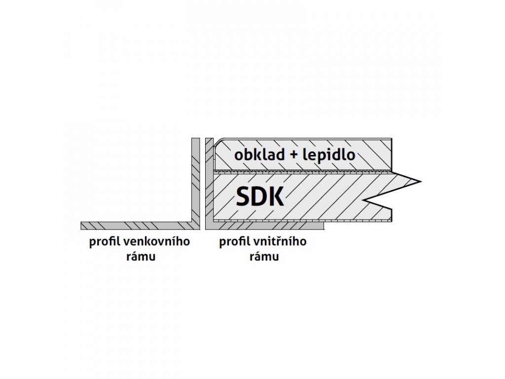 - Zapuštěná SDK deska - příprava pro vložení obkladu do 10 mm (lepidlo + obklad)