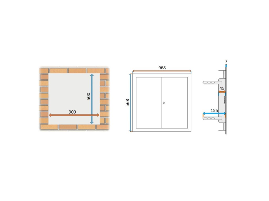 Revizní dvířka na plynoměr dvoukřídlá 900x500 HUP, antracitová