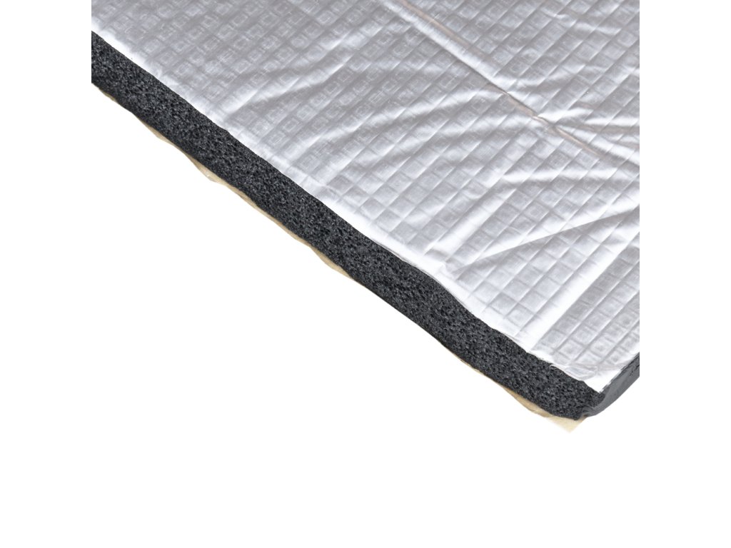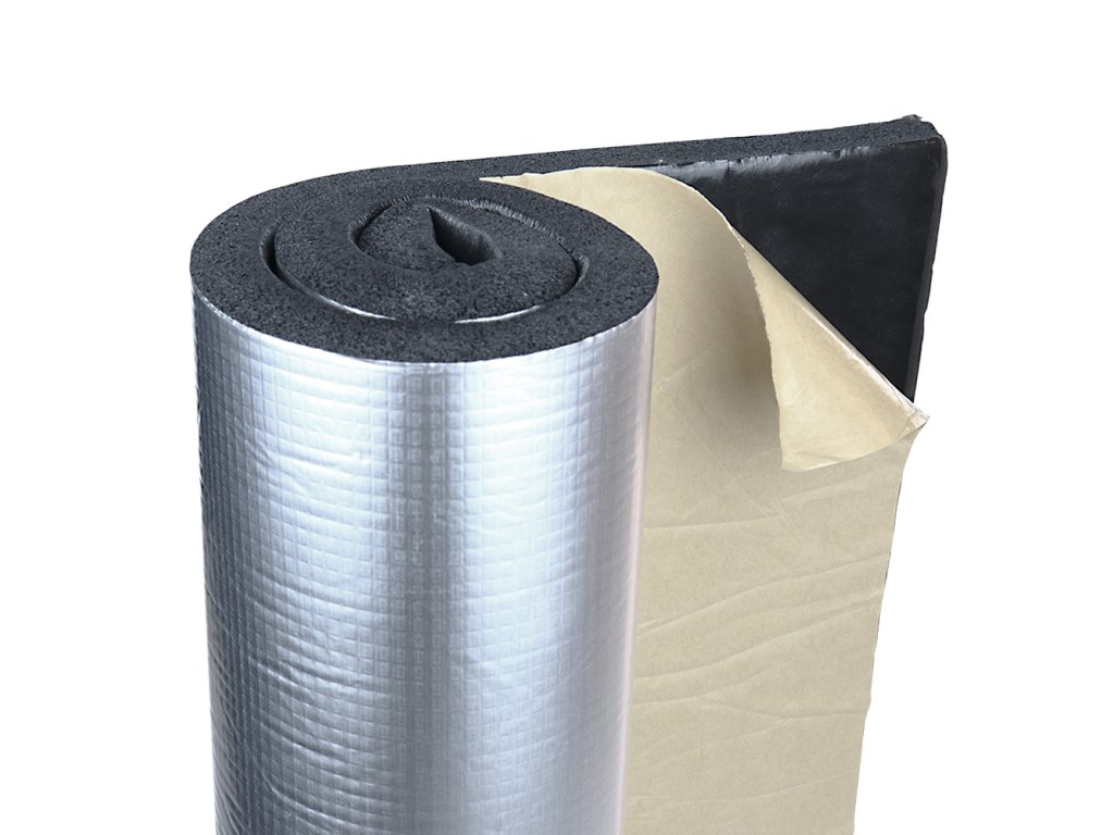 Střed izolace tvoří pěnová vrstva, která slouží jako hlavní tepelný izolant. Na jedné straně je laminovaná hliníkovou fólií, která zvyšuje izolační vlastnosti. Druhá strana izolace je poté opatřena silným samolepicím pojivem, které zajišťuje vynikající přilnavost a pevné spojení s různými povrchy, včetně plastových a kovových. Tato kombinace materiálů a vlastností zaručuje vysokou účinnost a dlouhou životnost tepelné izolace.