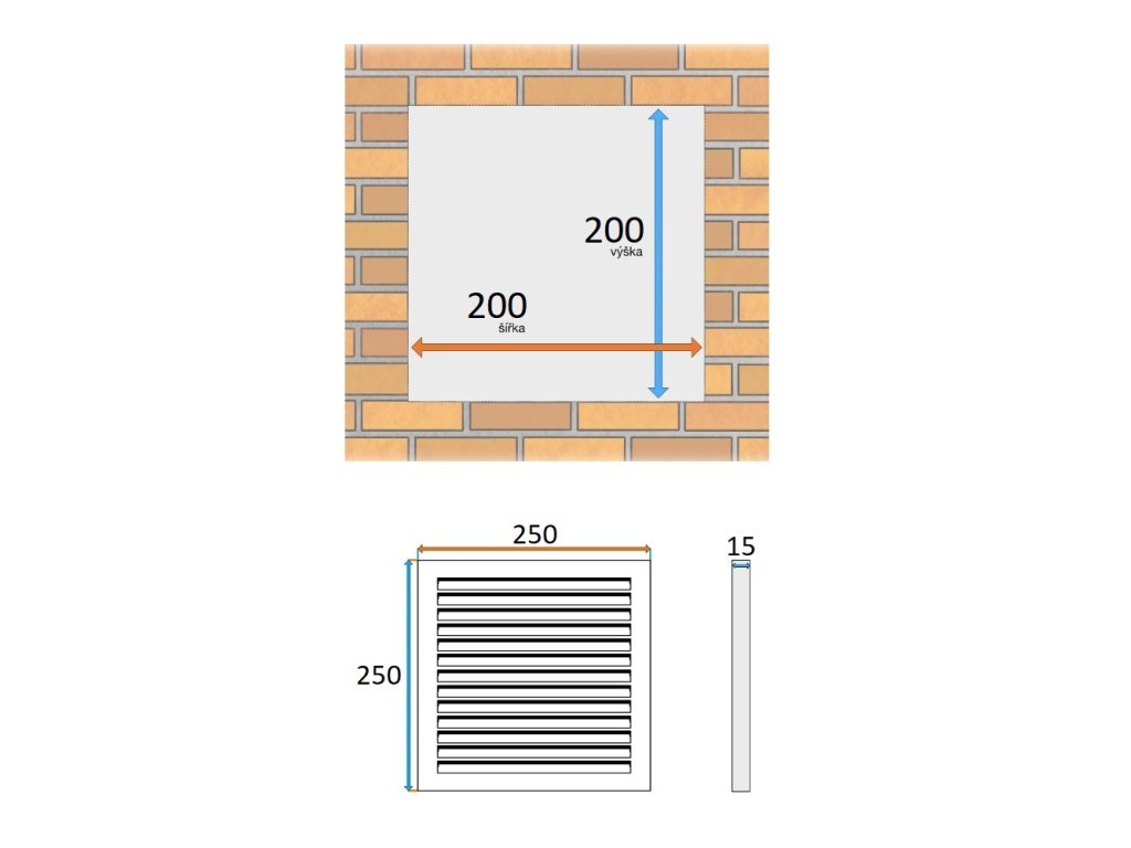 Ventilační mřížka fasádní kovová 250x250 mm FM 250x250 Pr pozink