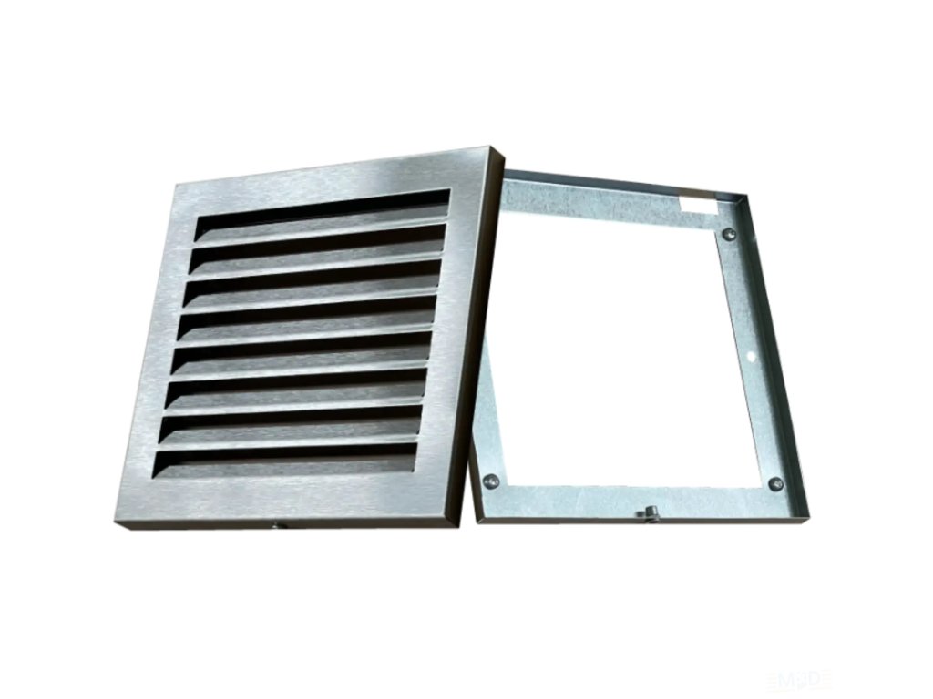Protidešťová ventilační mřížka je navržena pro montáž na stěnu. Její uchycení je elegantně vyřešeno pomocí skrytého závěsu na horní hraně mřížky a jediným vrutem na spodním straně rámu. Díky své konstrukci s pevnými lamelami neprodukuje tato mřížka hluk při proudění vzduchu, což platí i při použití v kombinaci s ventilátorem.