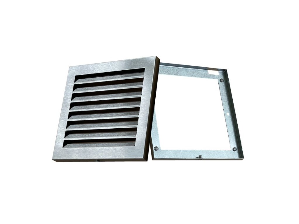 Protidešťová ventilační mřížka je navržena pro montáž na stěnu. Její uchycení je elegantně vyřešeno pomocí skrytého závěsu na horní hraně mřížky a jediným vrutem na spodním straně rámu. Díky své konstrukci s pevnými lamelami neprodukuje tato mřížka hluk při proudění vzduchu, což platí i při použití v kombinaci s ventilátorem.
