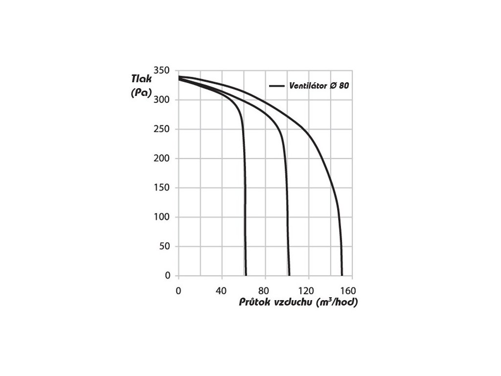 Ventilátor VNV 1 80 KV je vysokotlaká turbína v estickém balení. Ventilátor je k zabudování do zdi. Použití je do potrubí s vysokou tlakovou ztrátou, nebo k napojení do již existujících domovních rozvodů. Ventilátor je opatřen kuličkovými ložisky jež umožňují i nepřetržitý provoz. Je opatřen zpětnou klapkou a filtrem. Lze zapojit na 3 rychlosti. V tabulce uvádíme parametry té nejvyžší rychlosti na obrázku poté kompletní tabulka.